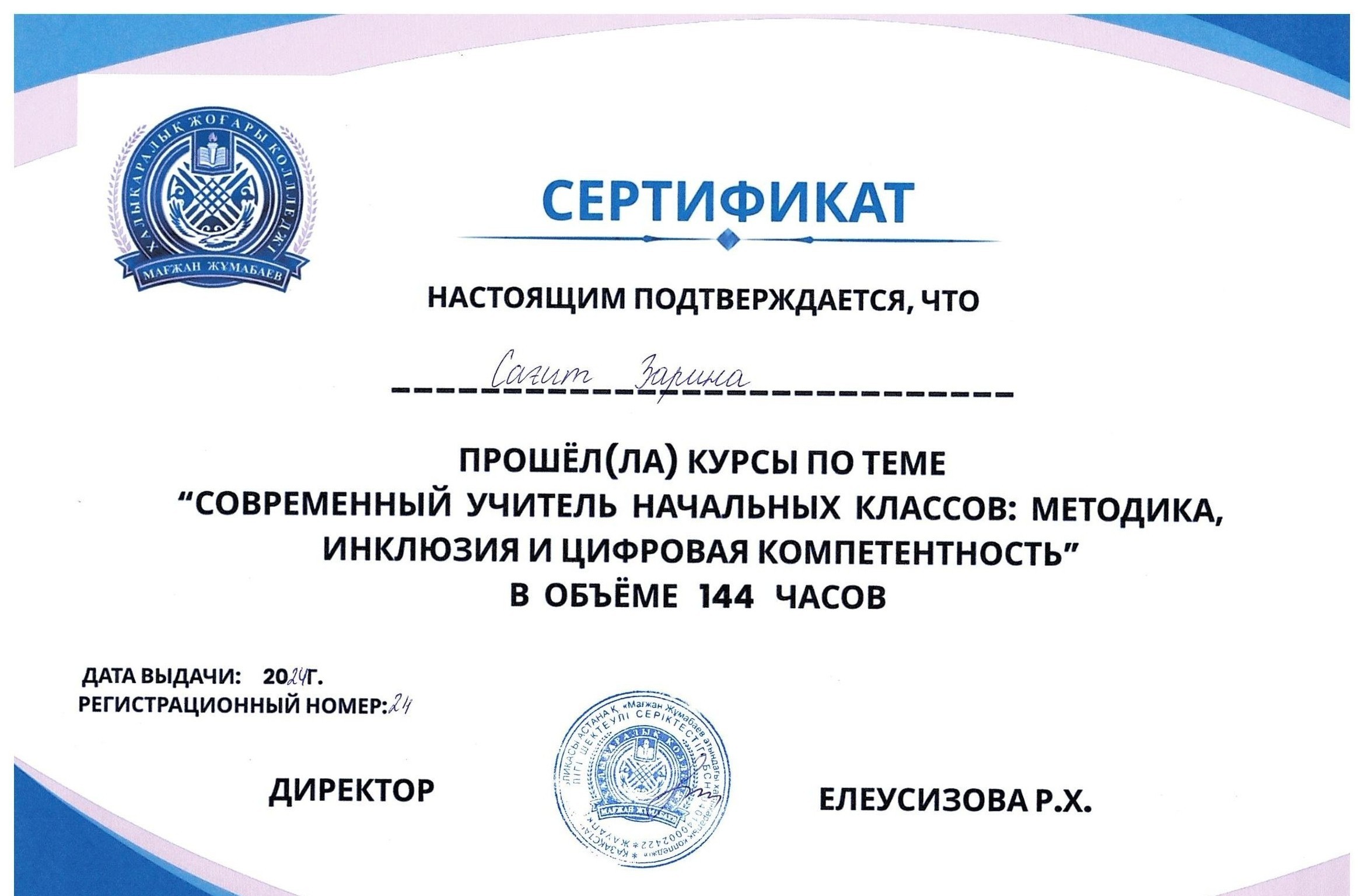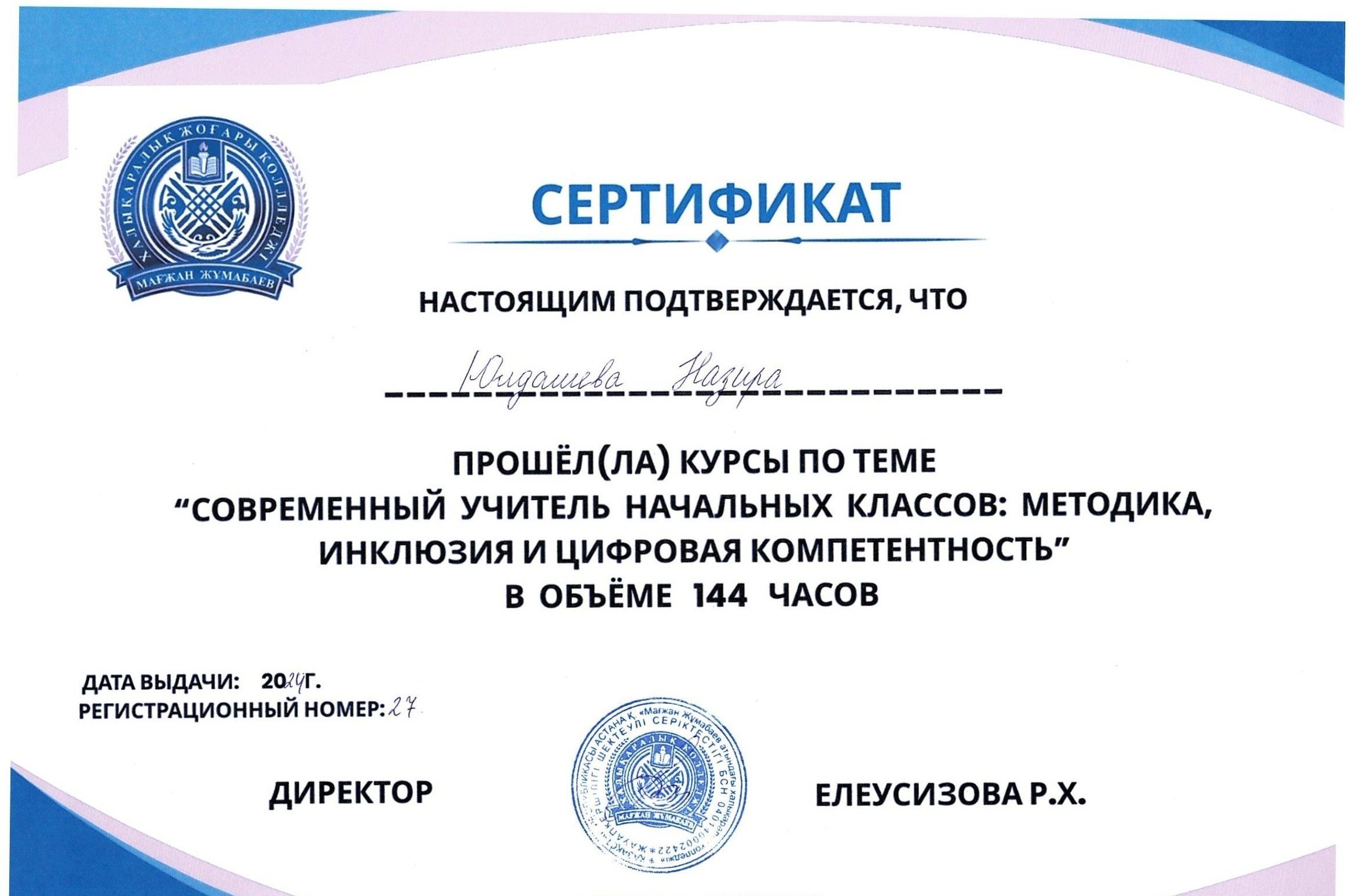 Для студентов Международного высшего колледжа Магжана Жумабаева были проведены курсы повышения квалификации по теме: «Современный учитель начальных классов: методика, инклюзия и цифровая компетентность»общим объёмом 144 часа.